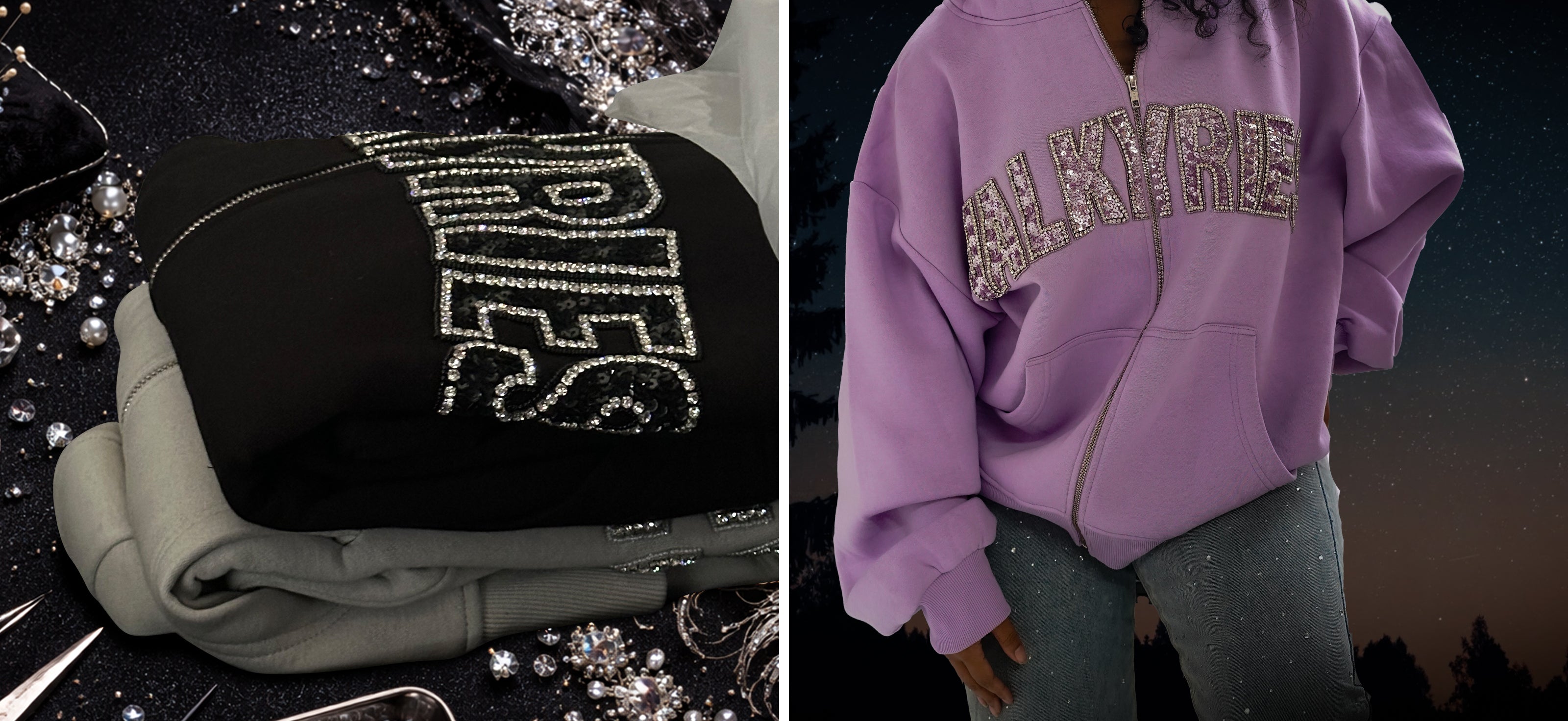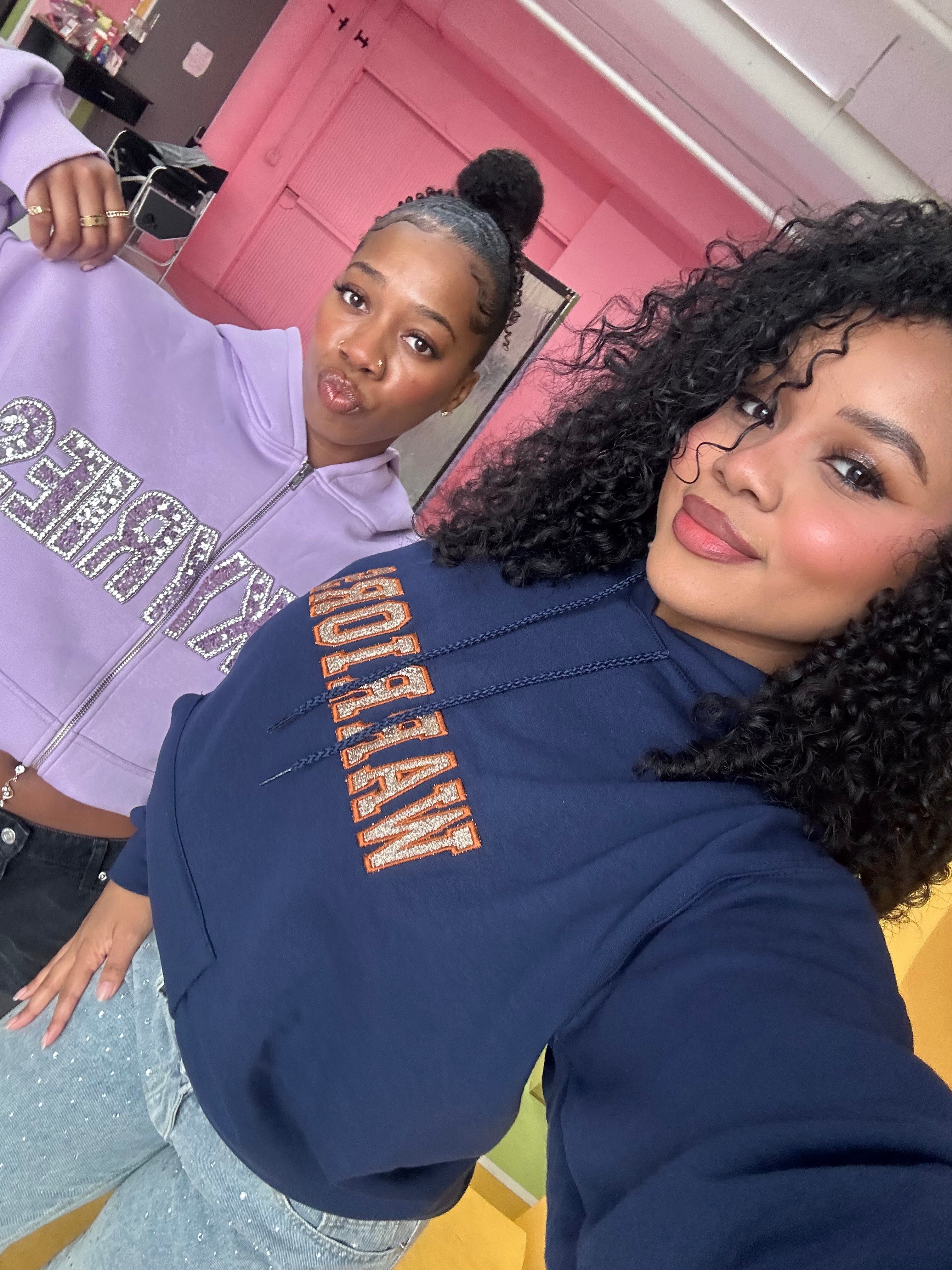 The embellished lettering detail adds a subtle touch of shine, elevating a casual staple into something special. Ideal for laid-back outings or relaxed moments, this hoodie delivers comfort without compromising on style.