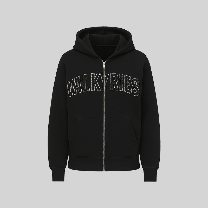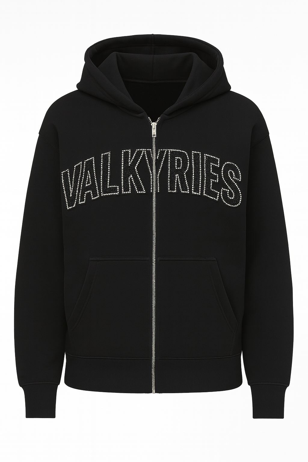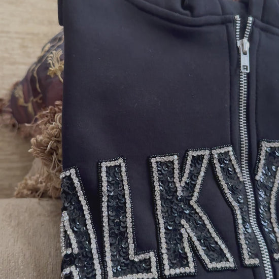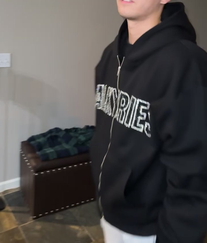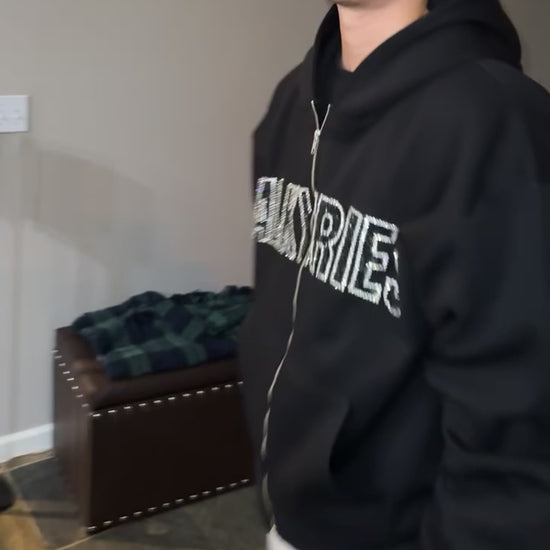 Black Hand-Embroidered Oversized Zip-Up Hoodie.