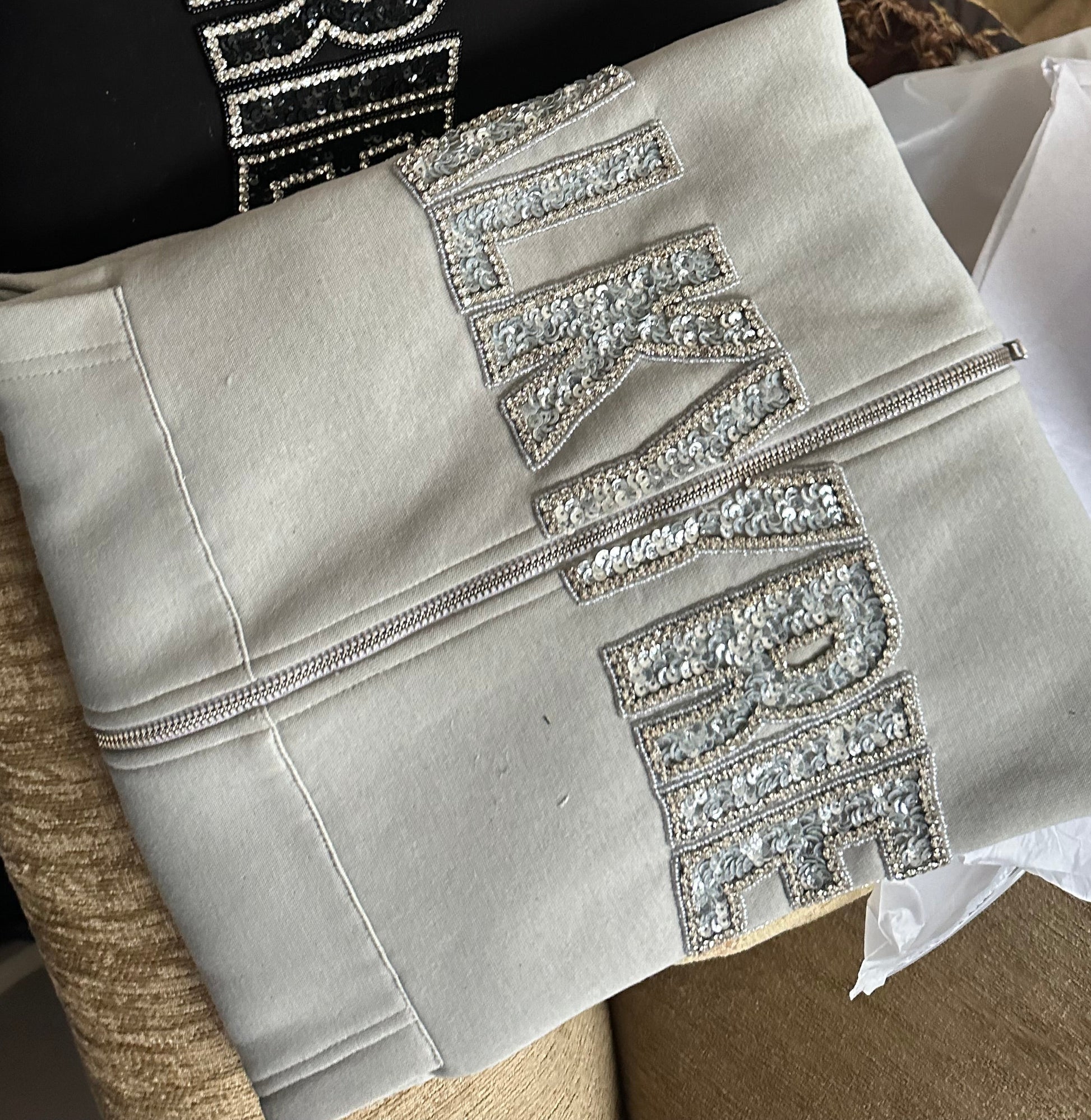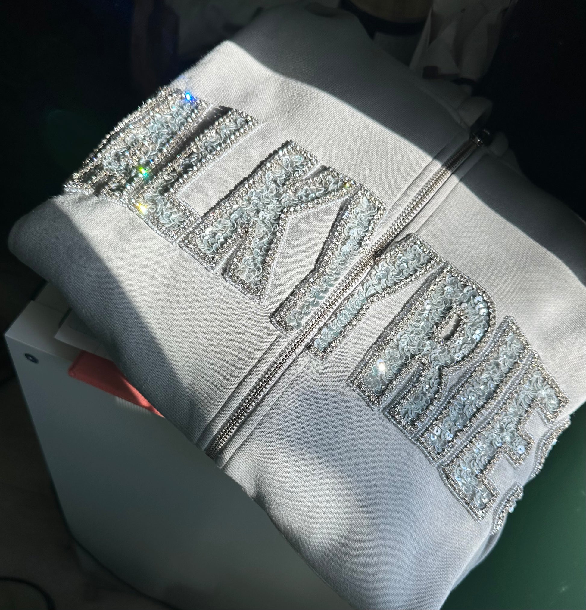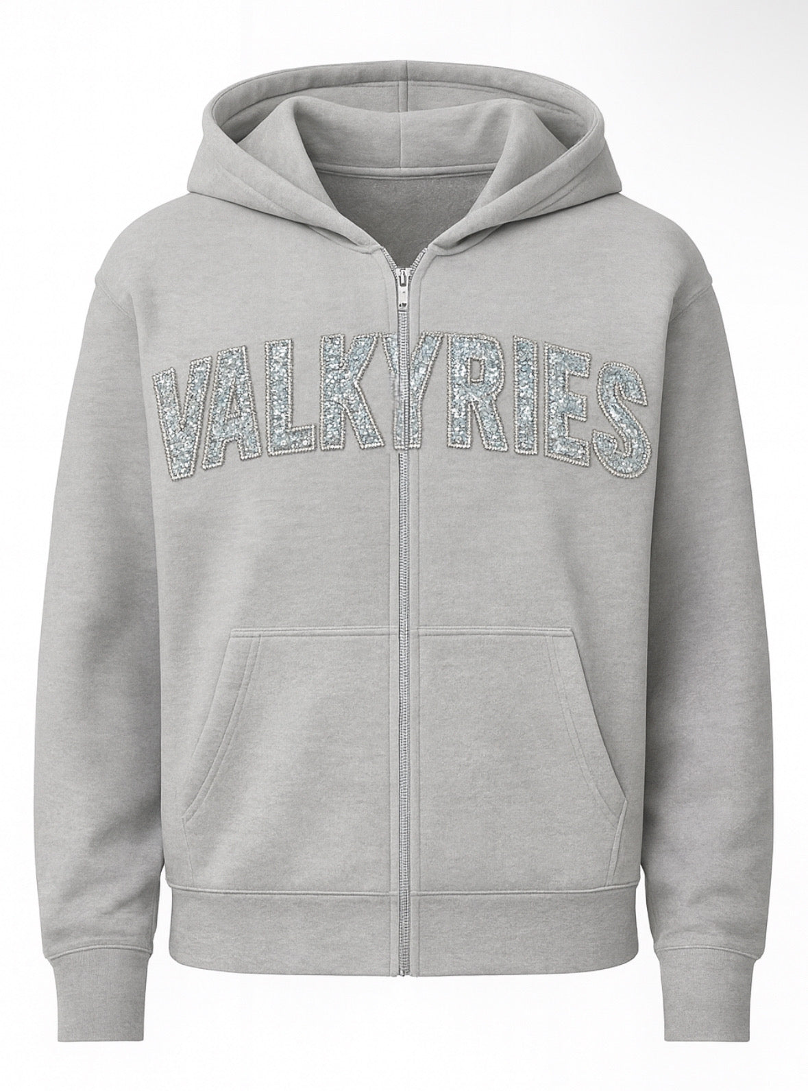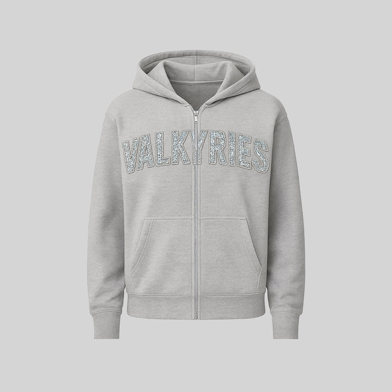 Gray Hand-Embroidered Oversized Zip-Up Hoodie